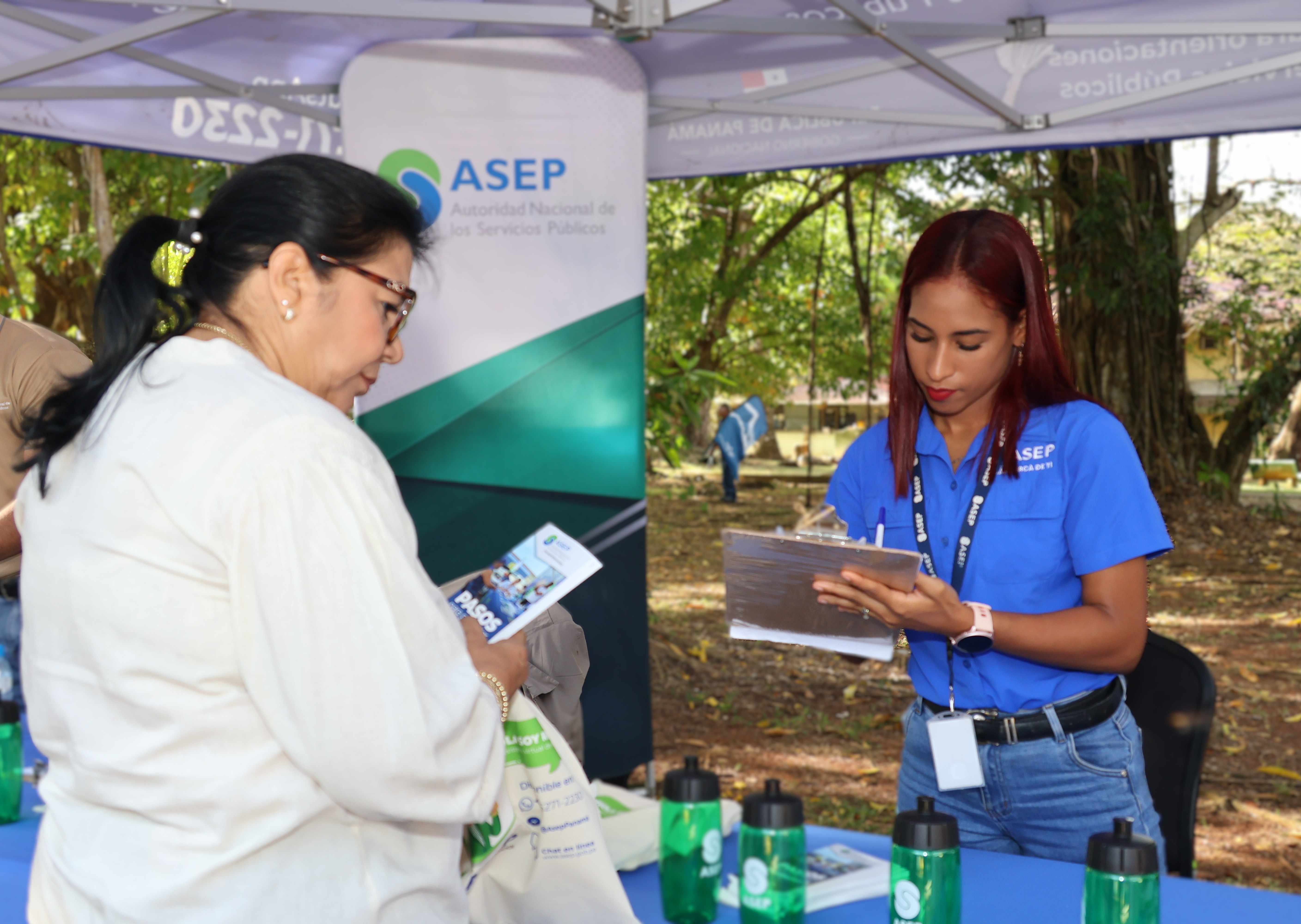 La ASEP participó con un stand que recibió la visita de decenas de personas que requerían información de los pasos para presentar reclamos, especialmente sobre la nueva plataforma RINA, la Oficina Móvil y el horario extendido.