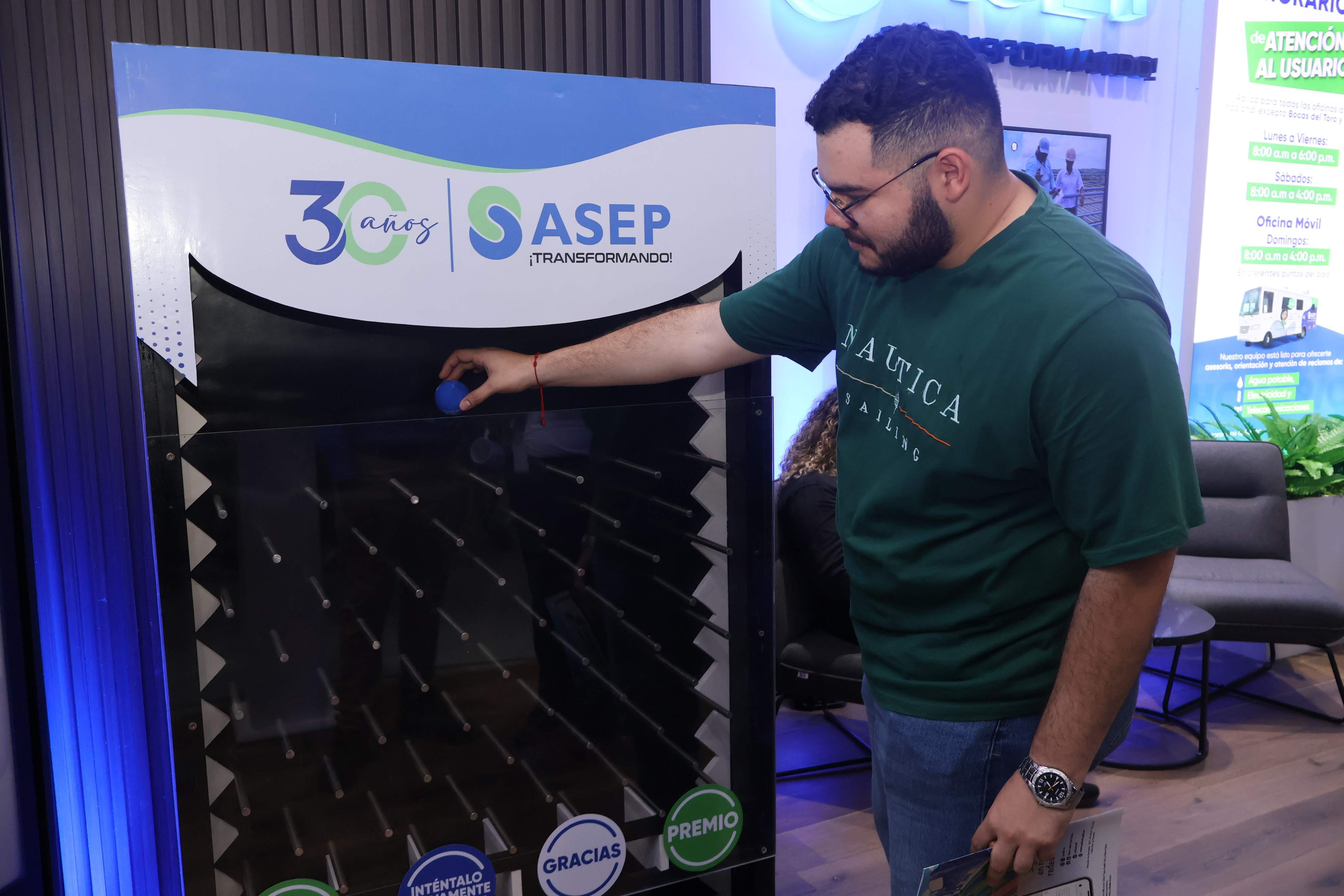 El popular juego conocido como Plinko formó parte de las amenidades que esta institución llevó al recinto ferial, permitiendo que, de una manera divertida, los participantes obtuvieran premios por las trivias relacionadas con los servicios públicos.