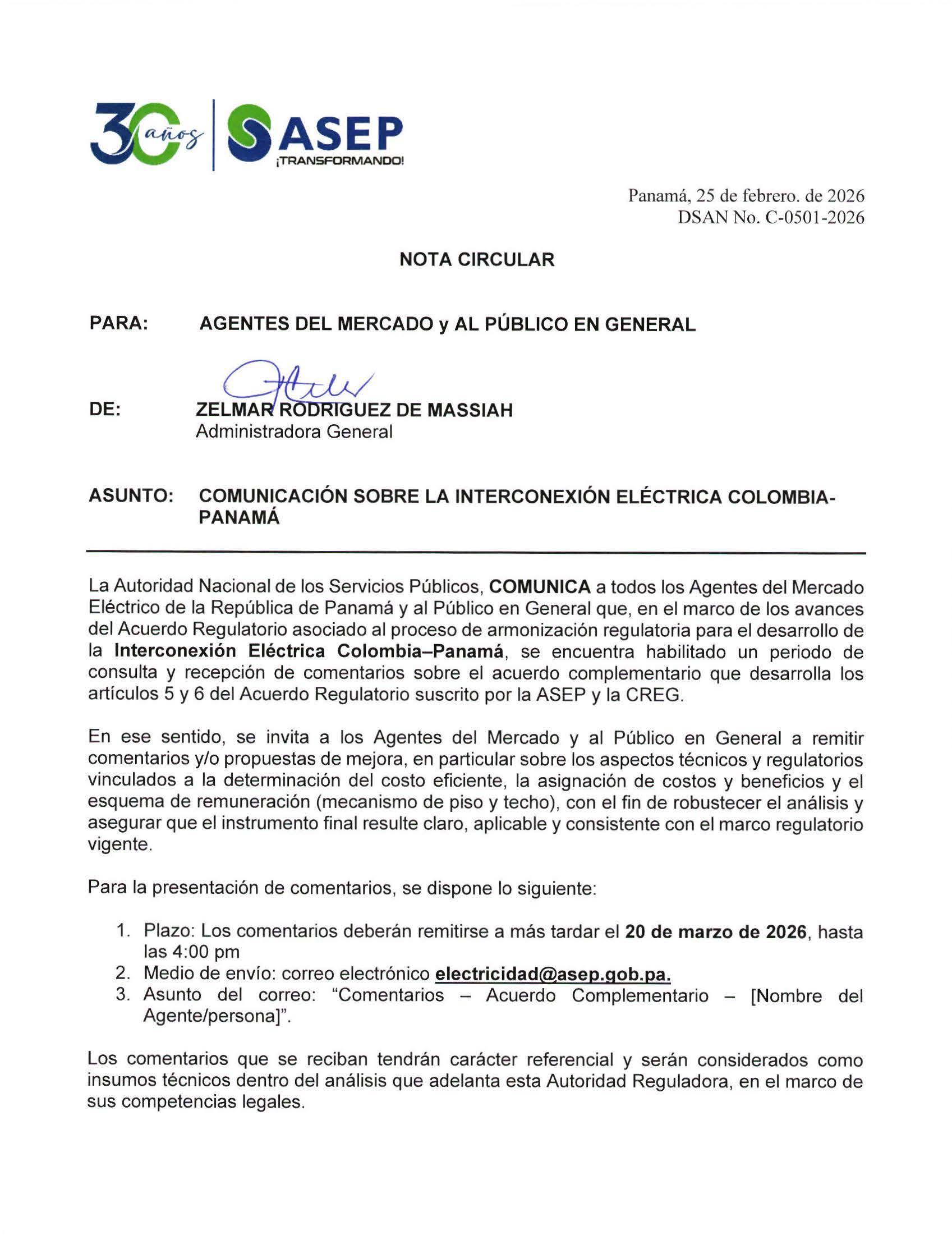 La Autoridad Nacional de los Servicios Públicos (ASEP) [...]